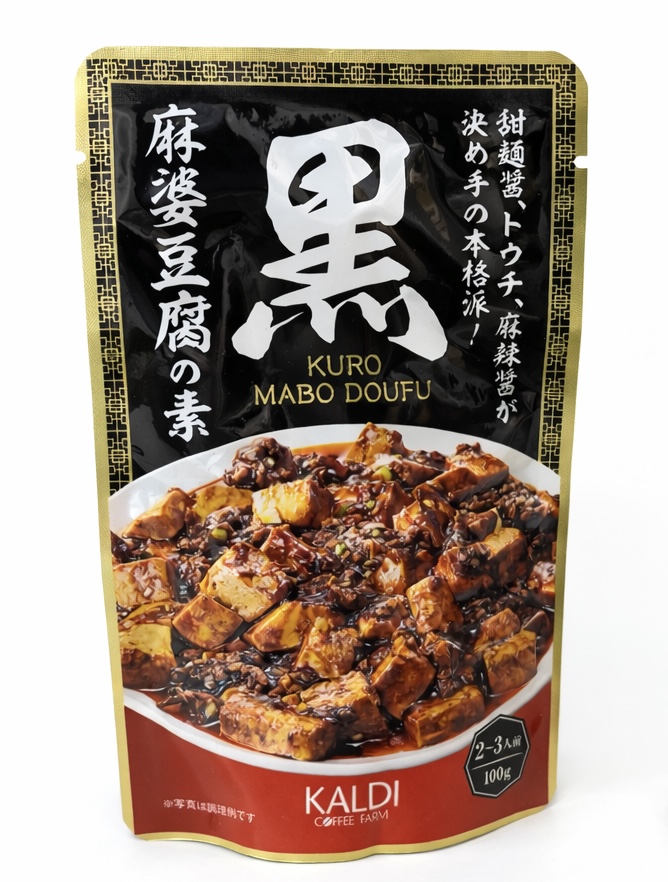 パッケージの「黒」の文字がインパクト大。こちらは、甜麺醤(テンメンジャン)の深いコクと、豆鼓(トウチ)の旨味が効いた、濃厚な味わいが特徴です。